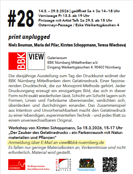 Die offenen Ateliertage des BBK Nürnberg Mittelfranken 2025 Die Mitglieder des BBK mit ihren über ganz Mittelfranken verteilten Ateliers bilden ein Netzwerk künstlerischer Vielfalt.